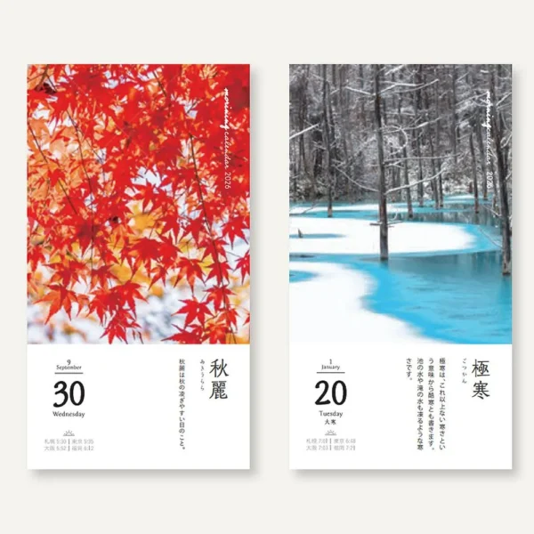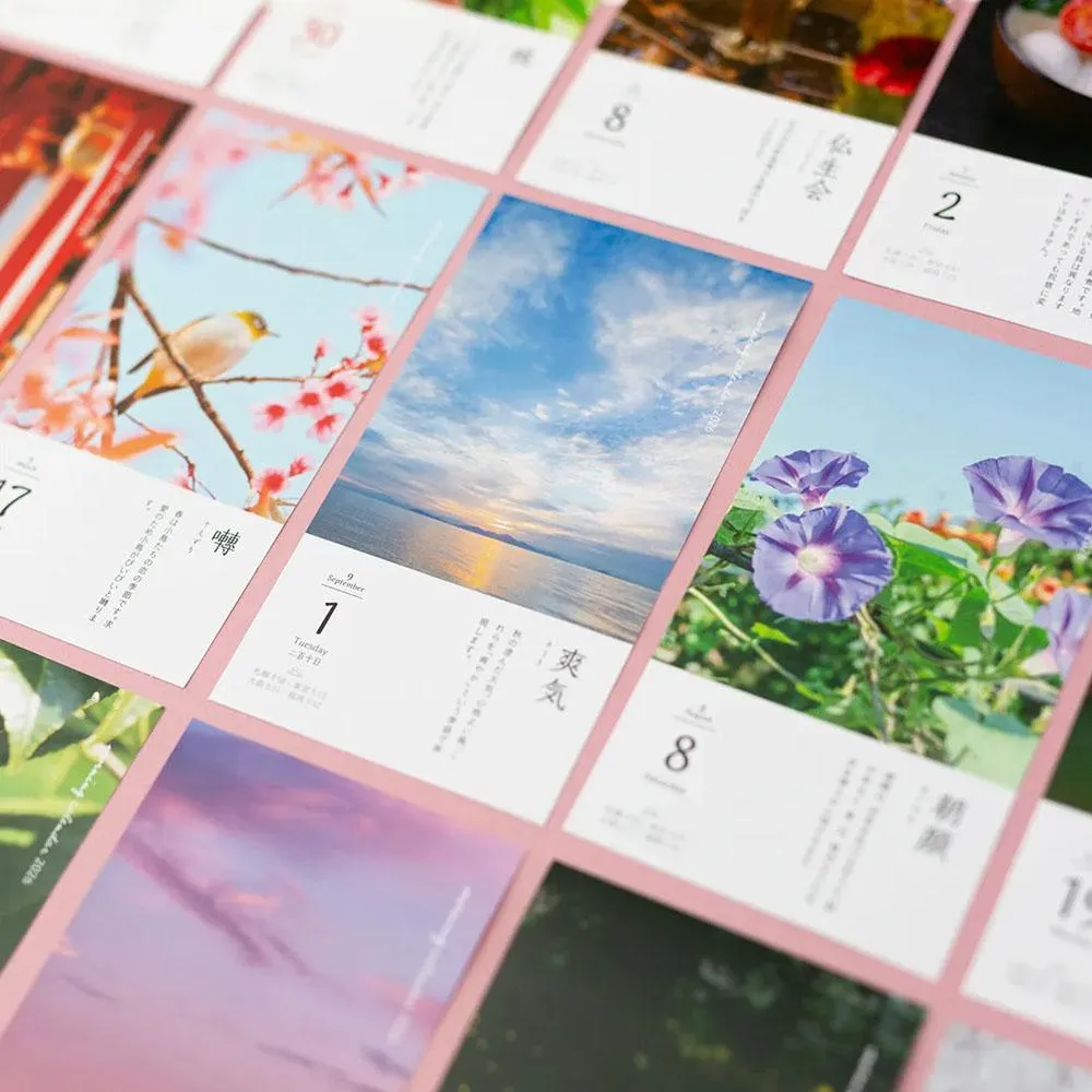 這是一款以日曆生活的熱門內容之一「朝之日」為基礎的日曆。 此日曆可讓您了解小的季節性變化,否則您在忙碌時可能會忽略這些變化。 一天一個字,美麗的日語和照片會讓你的一天充滿陽光。