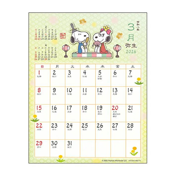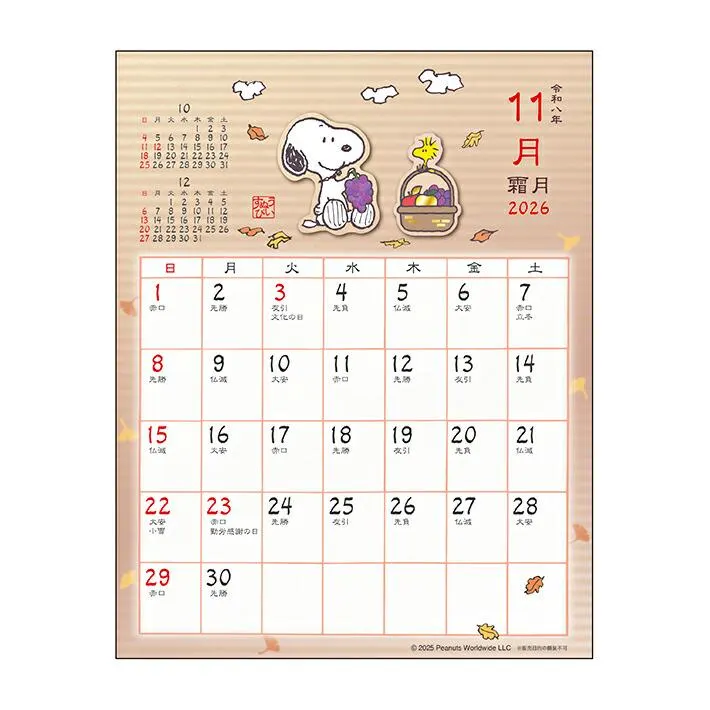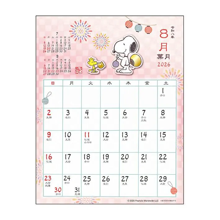 APJ 2026年版 SNOOPY 和風 掛牆月曆