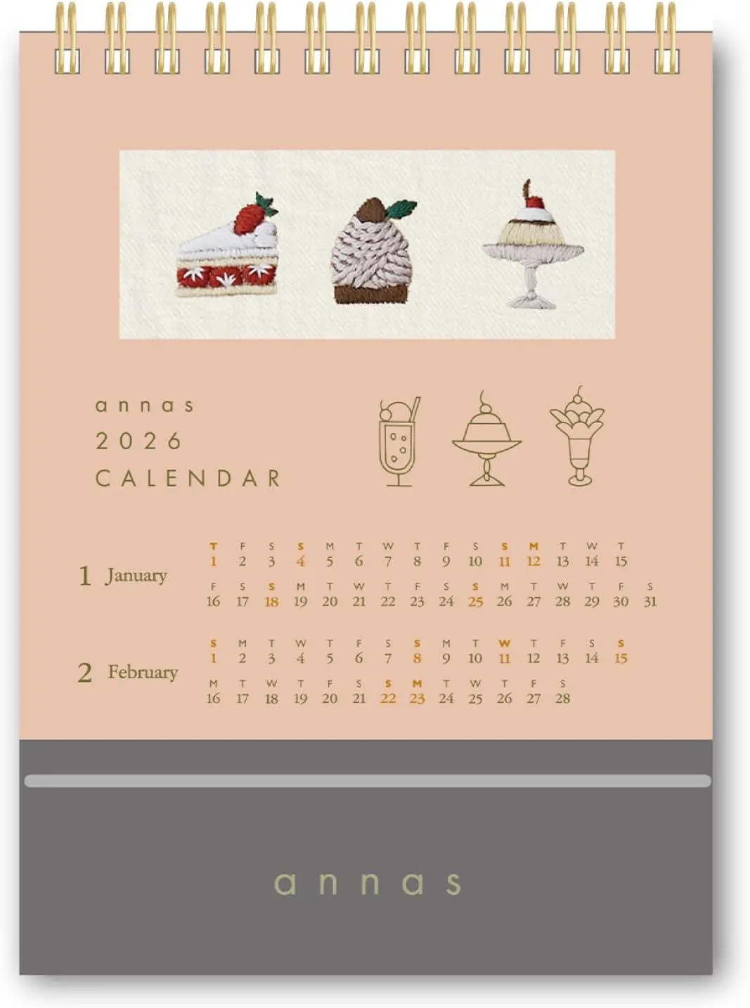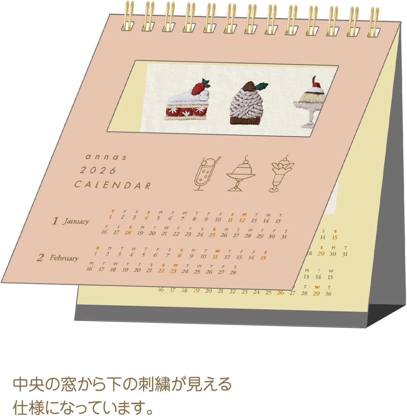Gakken annas 2026年版 立體刺繡 2連月 座枱月曆 (麵包)