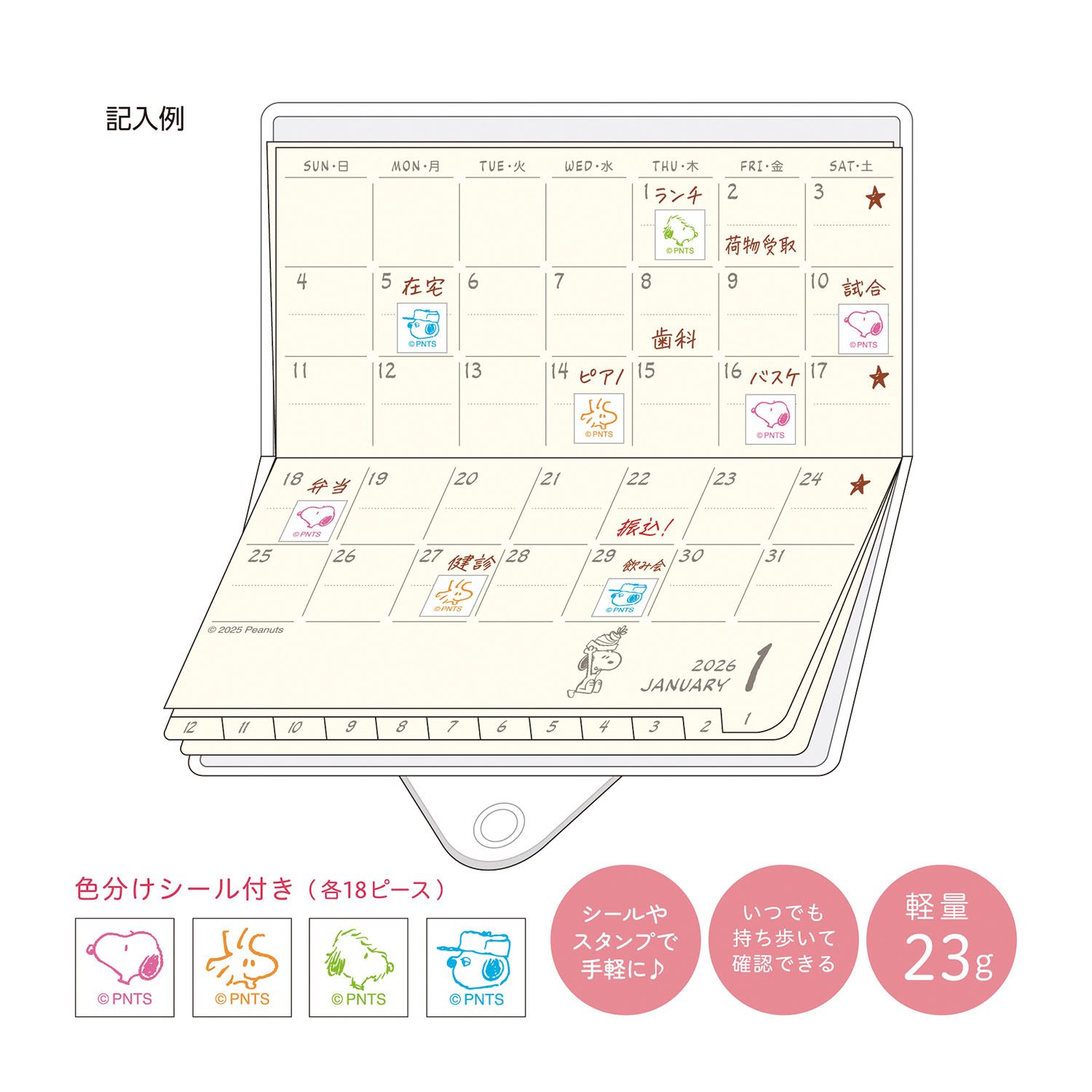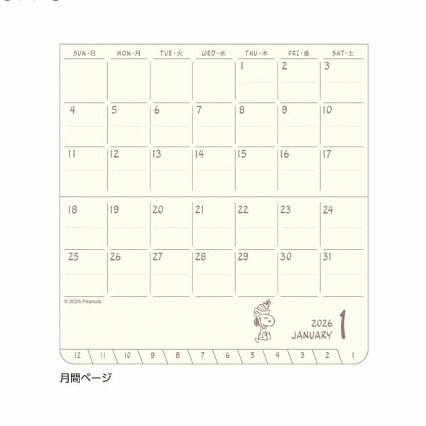 Kutsuwa 2026年版 Peanuts Snoopy 超迷你口袋月間手帳,小巧輕便,方便攜帶的小尺寸