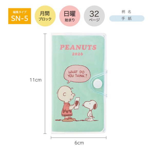 Kutsuwa 2026年版 Peanuts Snoopy 超迷你口袋月間手帳 (snoopy&charlie/綠色)