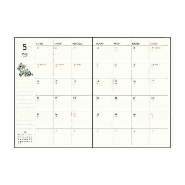 Sun-Star 2026年版 MOOMIN B6月間手帳 (姆明谷朋友們/薄荷綠)